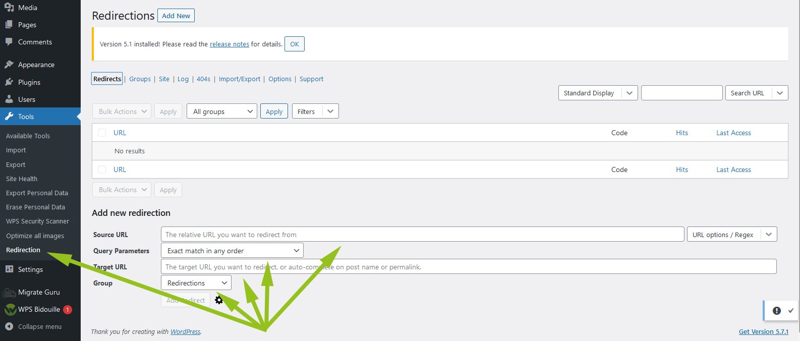 Once the plugin is installed and activated, go into the options of this plugin and create your first redirection as below :