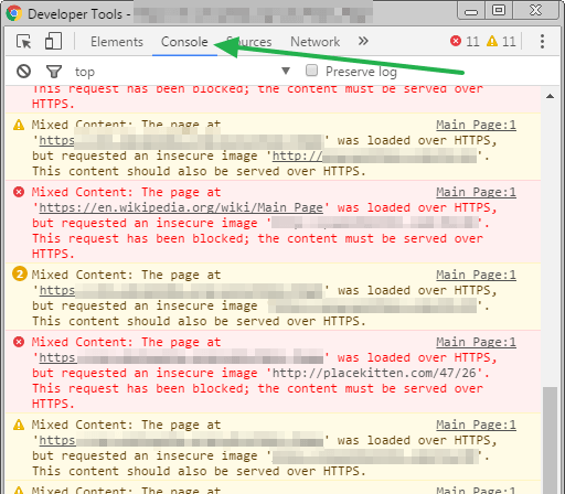 To check this, go to your site and press the F12 key on your keyboard (works under Chrome and Firefox), and in the window that opens, go to the "Console" tab. You may then see errors as below (Mixed content) :