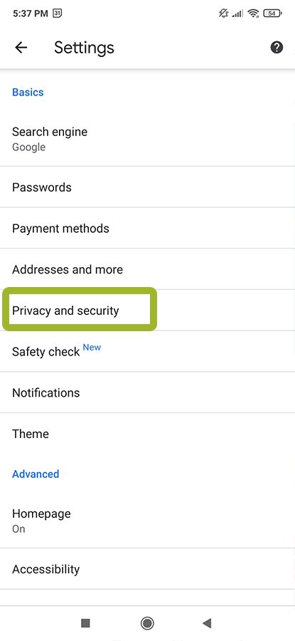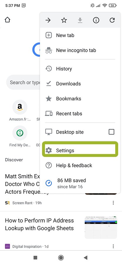 Open Chrome on your phone. Click on the hamburger icon and select "Settings".