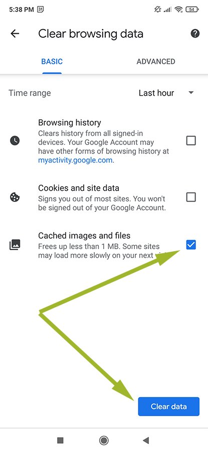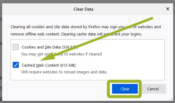 A Pop-Up window will open. Tick the items to be deleted by selecting "Cached web content" then "Delete".