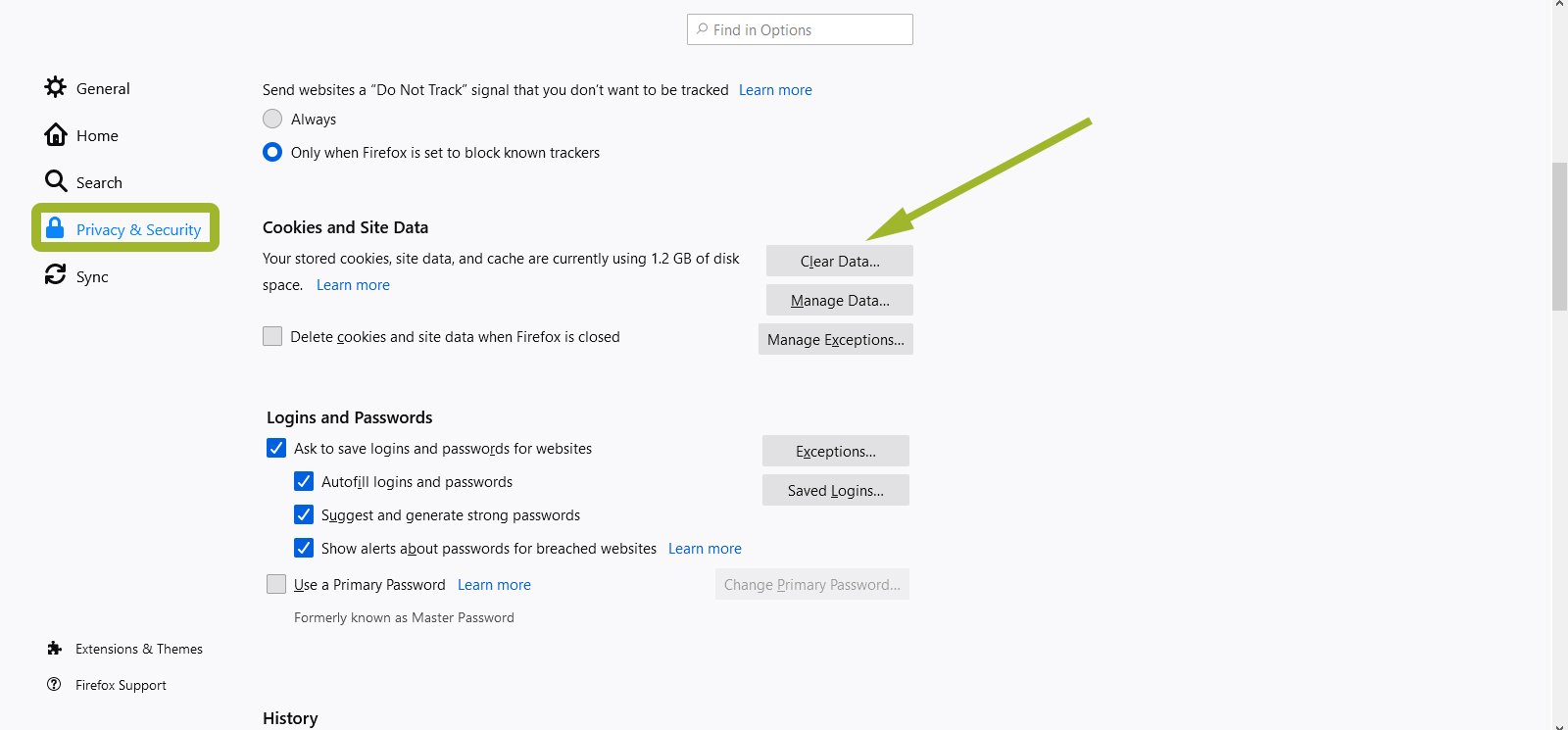 Go to the "Privacy and Security" tab on the left menu, and in the section "Cookies and site data", click on the "Delete data..." button.