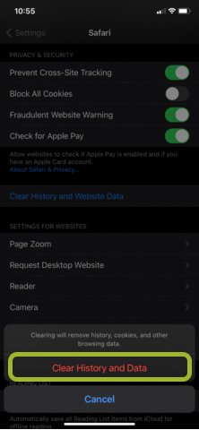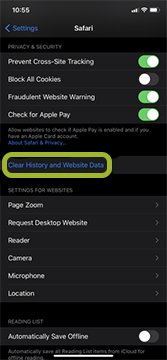 Scroll down and, at the bottom in the applications, select Safari and "Clear history and website data".