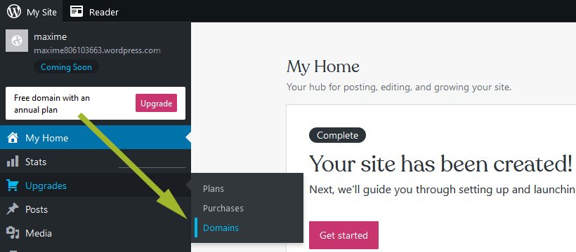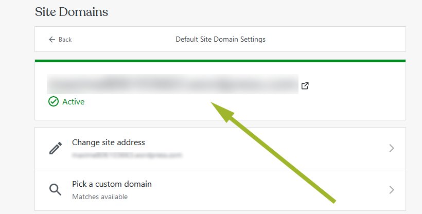 - You will now see your temporary WordPress.com address and your domain name. Click on the block containing your domain name.