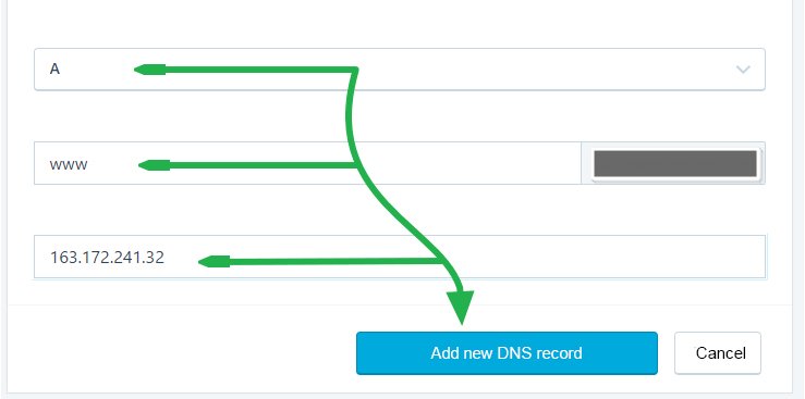 - Choose entry type "A", enter www and the IP address of the server on which you’re hosted.