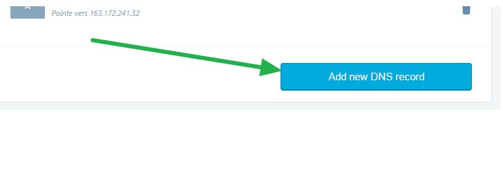 - You will arrive on the page containing all your DNS records. Click on the blue button at the bottom to add the www record which will allow us to point your domain with www to our servers.