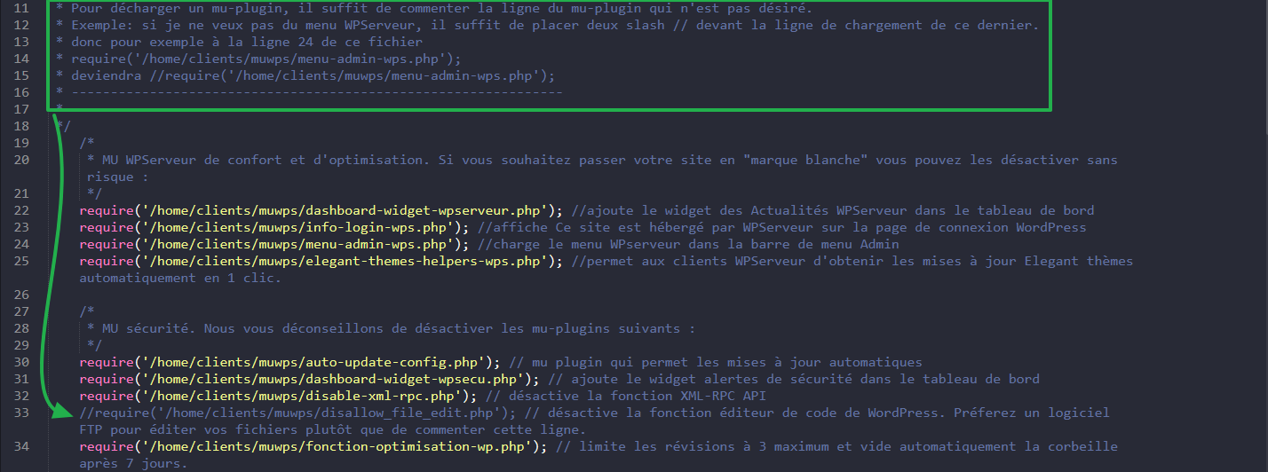 3 : Once you’ve opened the file muwps.php in your favourite text editor (Notepad++, SublimeText...), go to line 33, and comment this line by adding // at the beginning of this line, to disable the blocking script of the WordPress editor, as below.