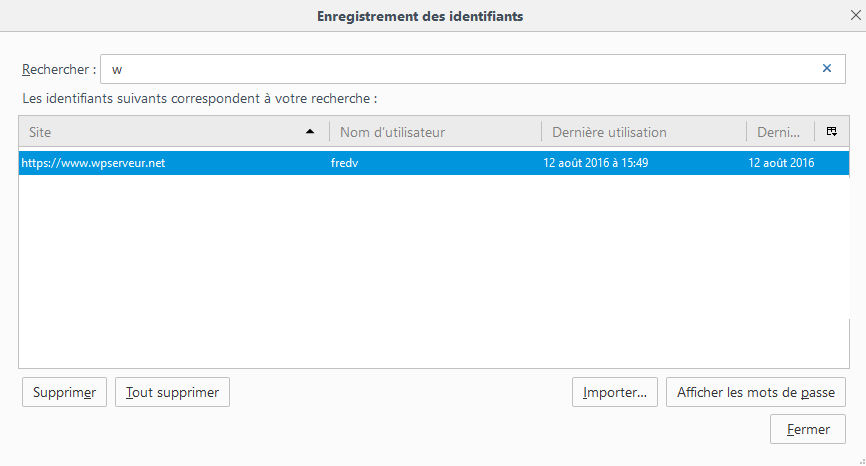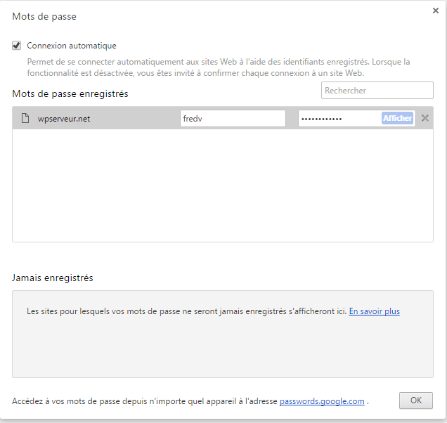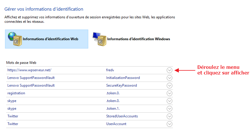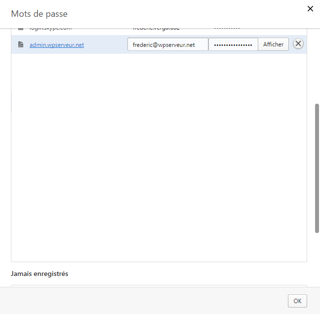 The window for managing your passwords will open, select the WPScale url and click on "Display".