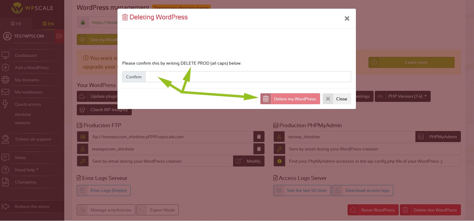 - You then have to confirm by writing the words "DELETE PROD" in the field and validate !