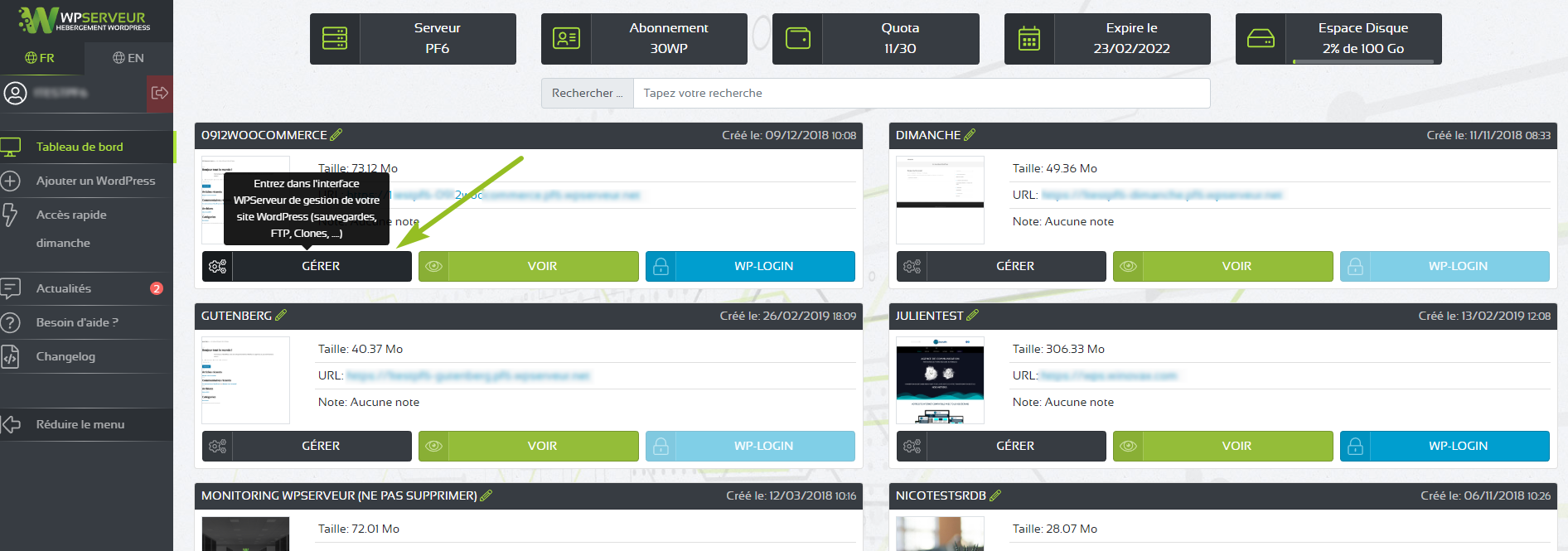 To delete your WordPress, it's a simple action but be careful - it's irreversible ! Deleting one of your WordPress files will also delete its clone and backups.